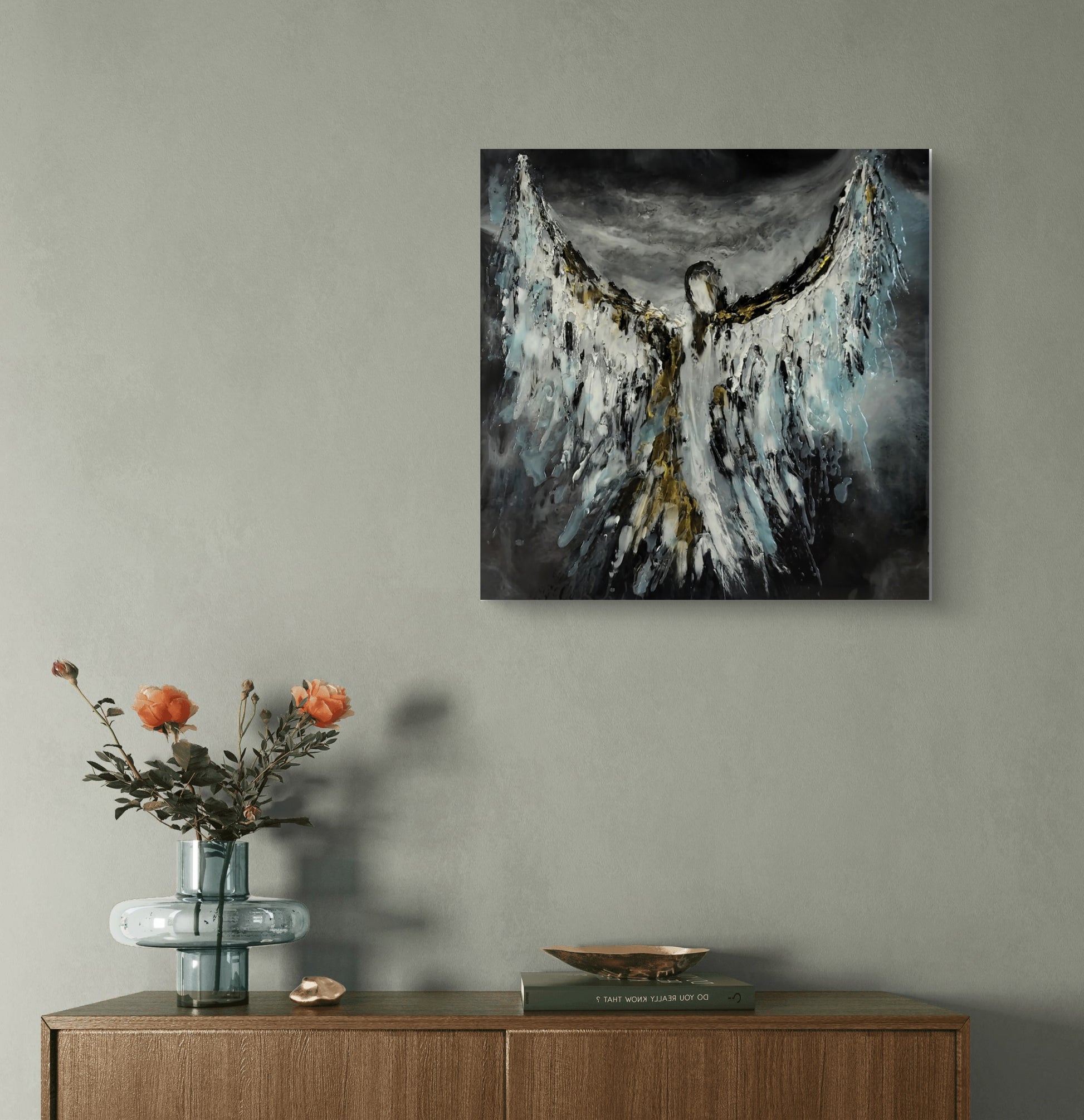L'opera trasmette allo spettatore un senso mistico ed etereo, enfatizzato dalla figura angelica in posa protettiva in stretta simbiosi con chi osserva.