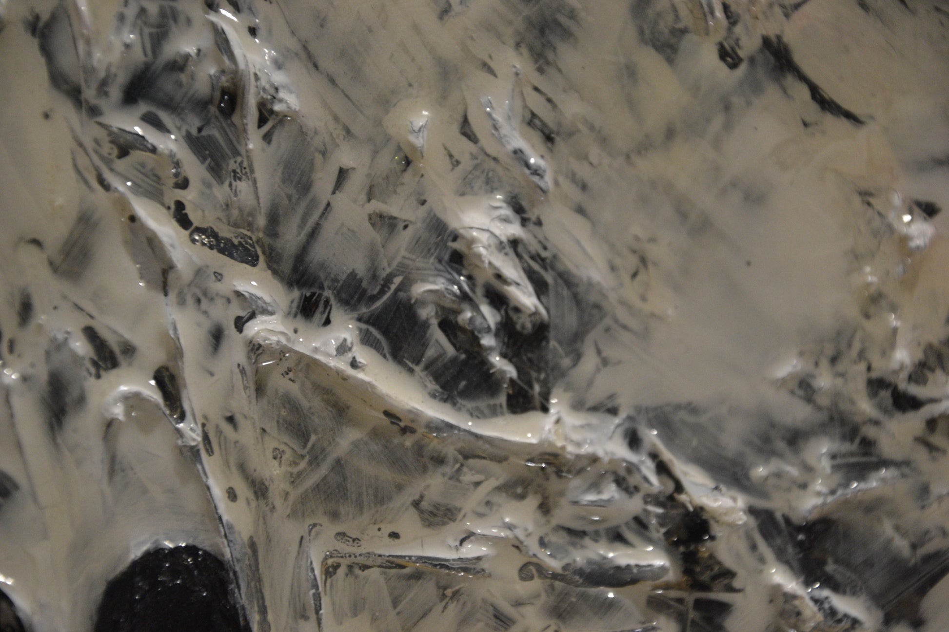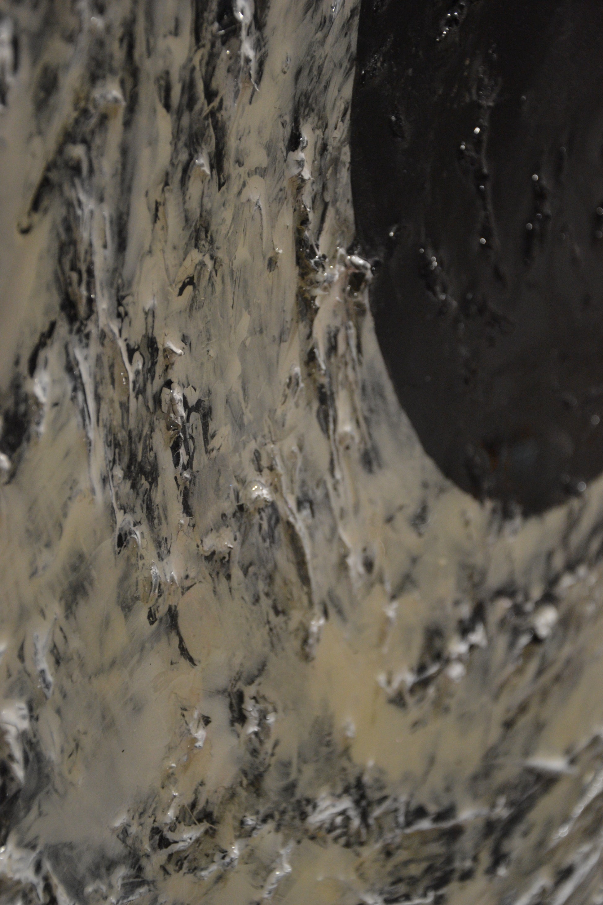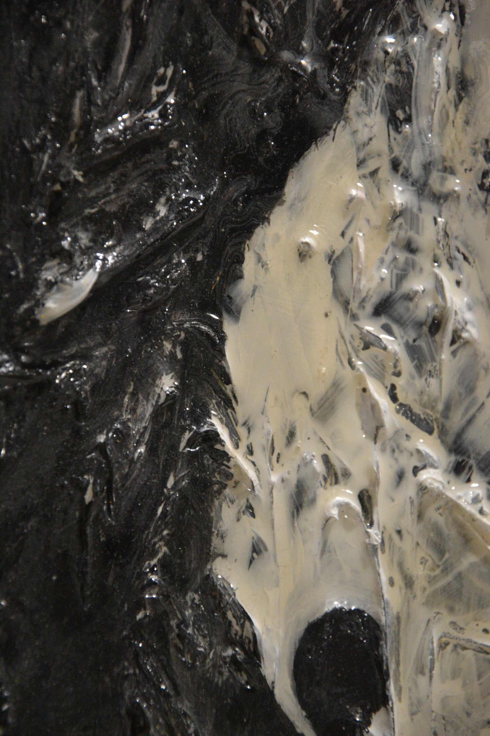 L'opera è realizzata miscelando resina epossidica, siliconi e colori acrilici.