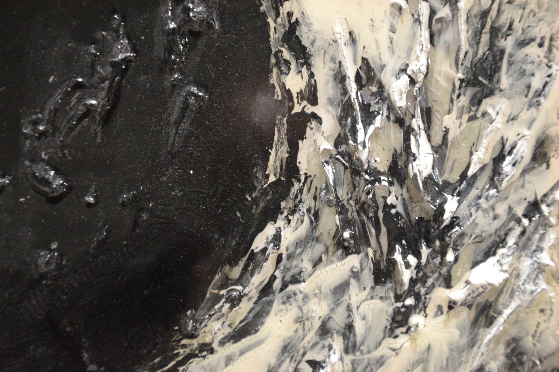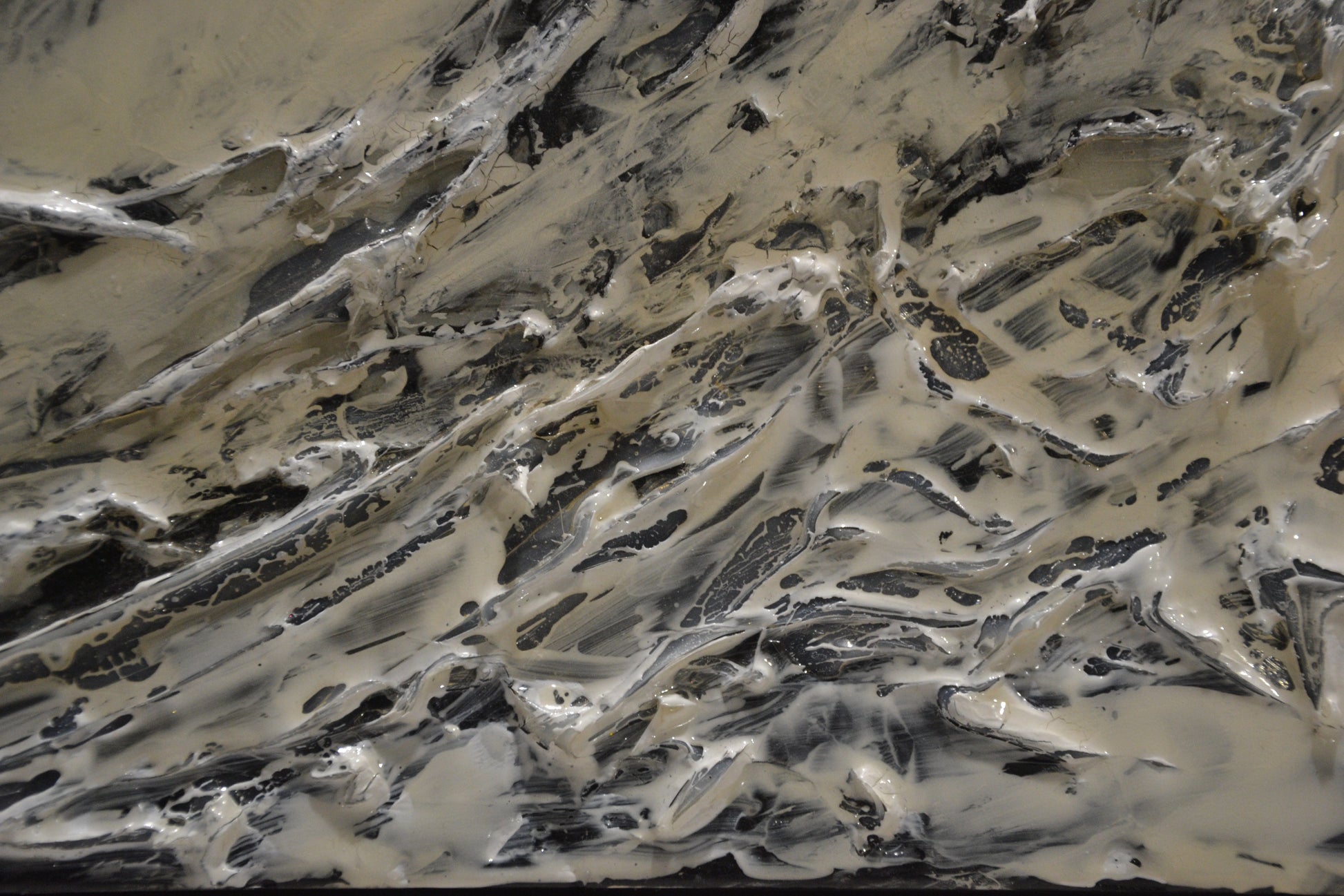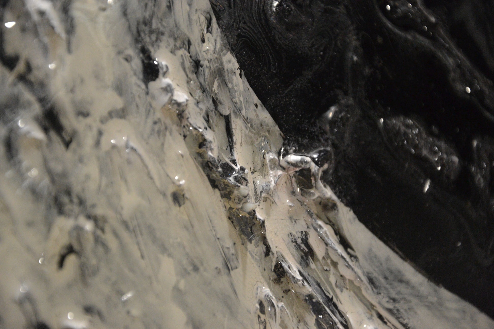L'opera è realizzata miscelando resina epossidica, siliconi e colori acrilici.