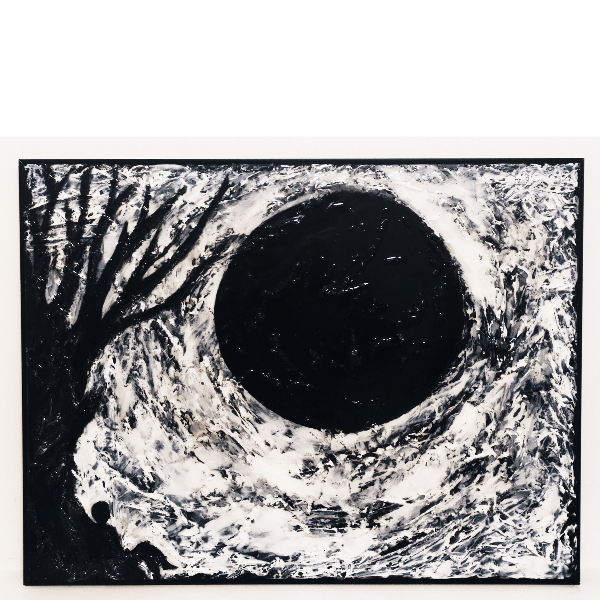 La base in legno è trattata con prodotti specifici per adattarsi all'utilizzo dei colori acrilici e della resina. Osservando l'opera da diverse angolazioni è possibile notare un cambiamento nella sua luminosità dovuto all'utilizzo della resina.