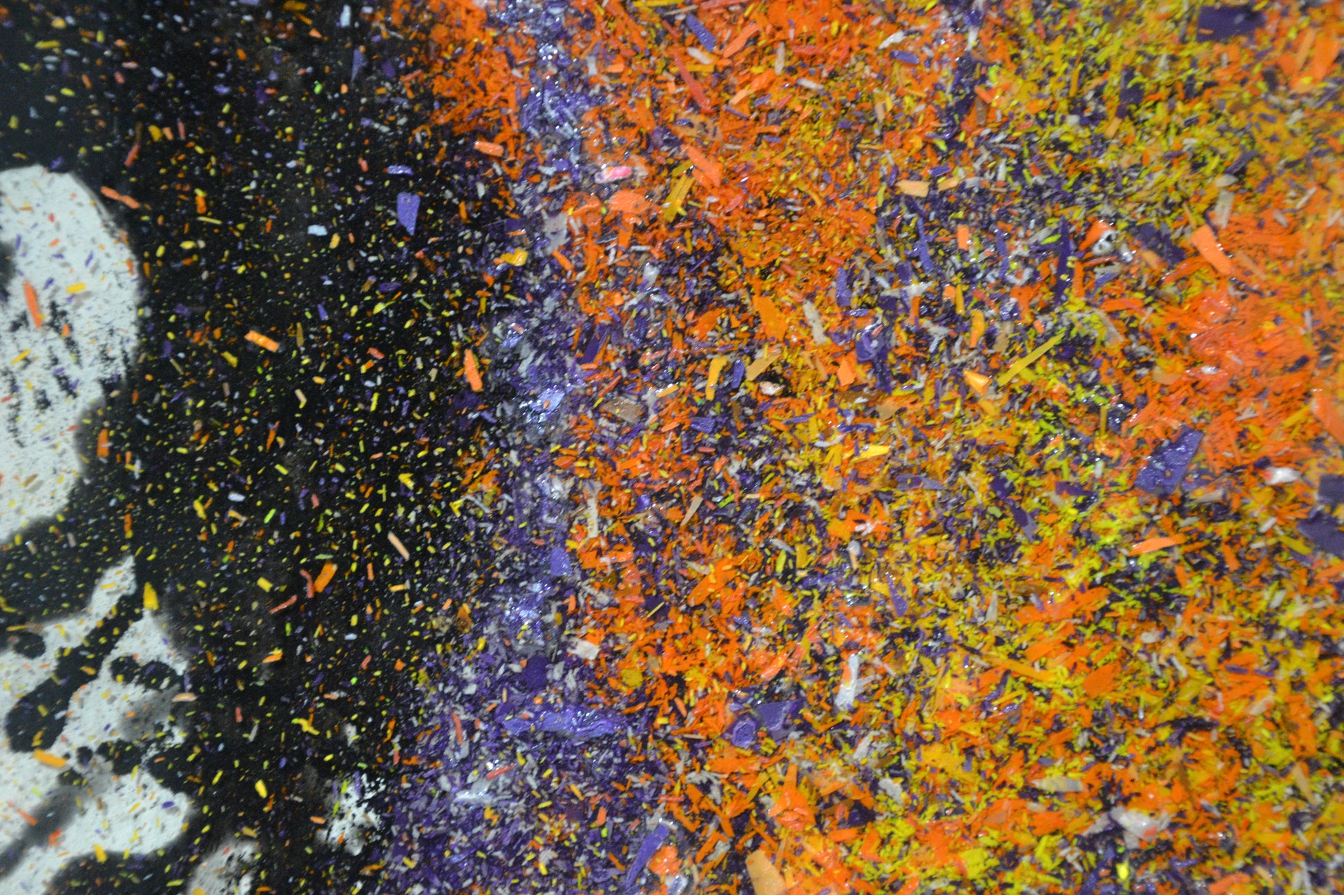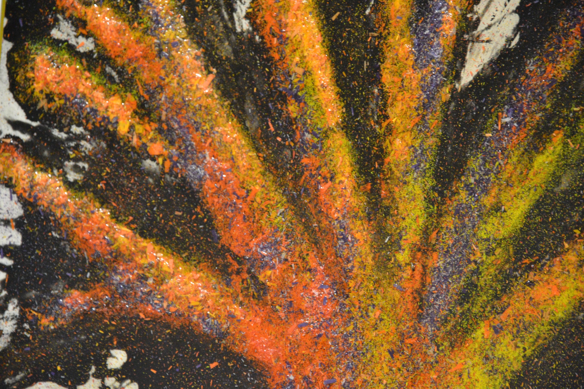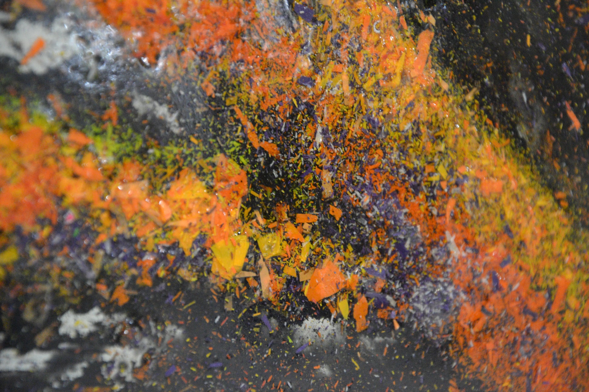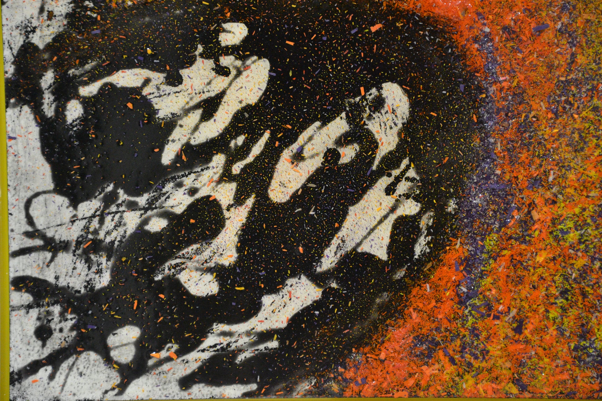 L'opera è realizzata miscelando resina epossidica, trucioli di cera e colori acrilici.