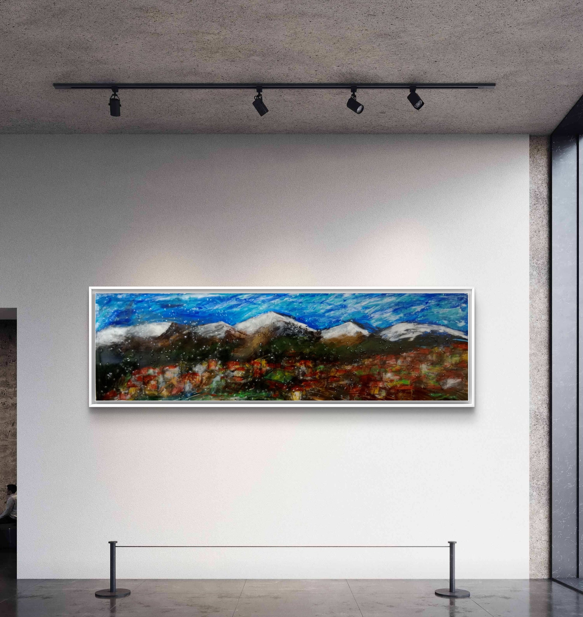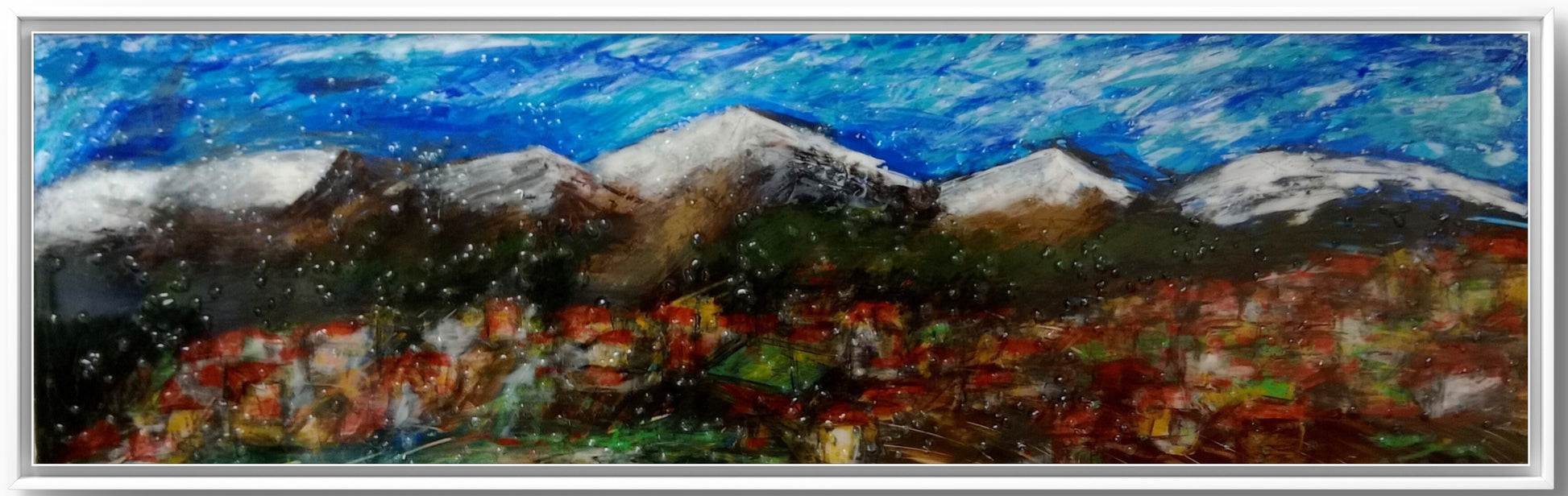The artwork is created using epoxy resin and acrylic paints.